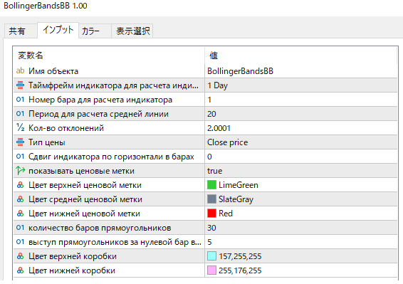 現在のボリバンの±2σ間の値幅を分かりやすく示す「BollingerBandsBB」