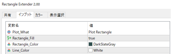 Plot Whatをplot Rectangle +midlineに変更すると、レクタングルの中心にラインが描画できます。