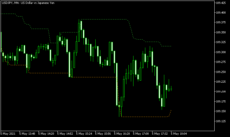 あとは、通常のインジケーターと同じようにチャート上にドラッグアンドドロップするだけで表示ができます。
