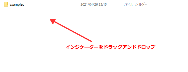 Indicatorsフォルダ内に入れたいインジケーターをドラッグアンドドロップします。