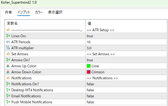 スーパートレンドと似たようなものを表示する「Kolier_Supertrend2」