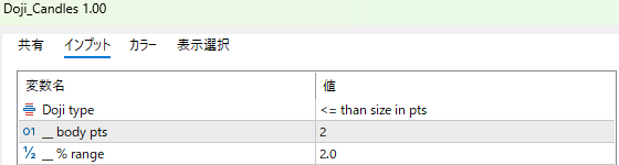 - 値幅全体に対する実体部分の割合、デフォルトでは2%未満