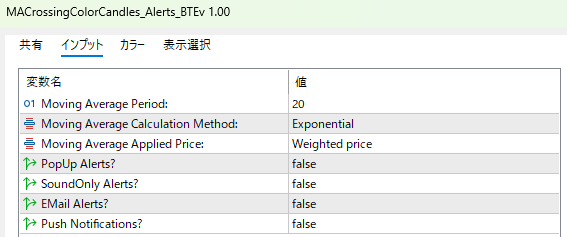 移動平均線を表示し、ローソク足がMAとクロスすると足の色が変わるインジです。