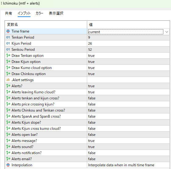 マルチタイムや様々な条件でアラートが発動する一目均衡表「! Ichimoku (mtf + alerts)」
