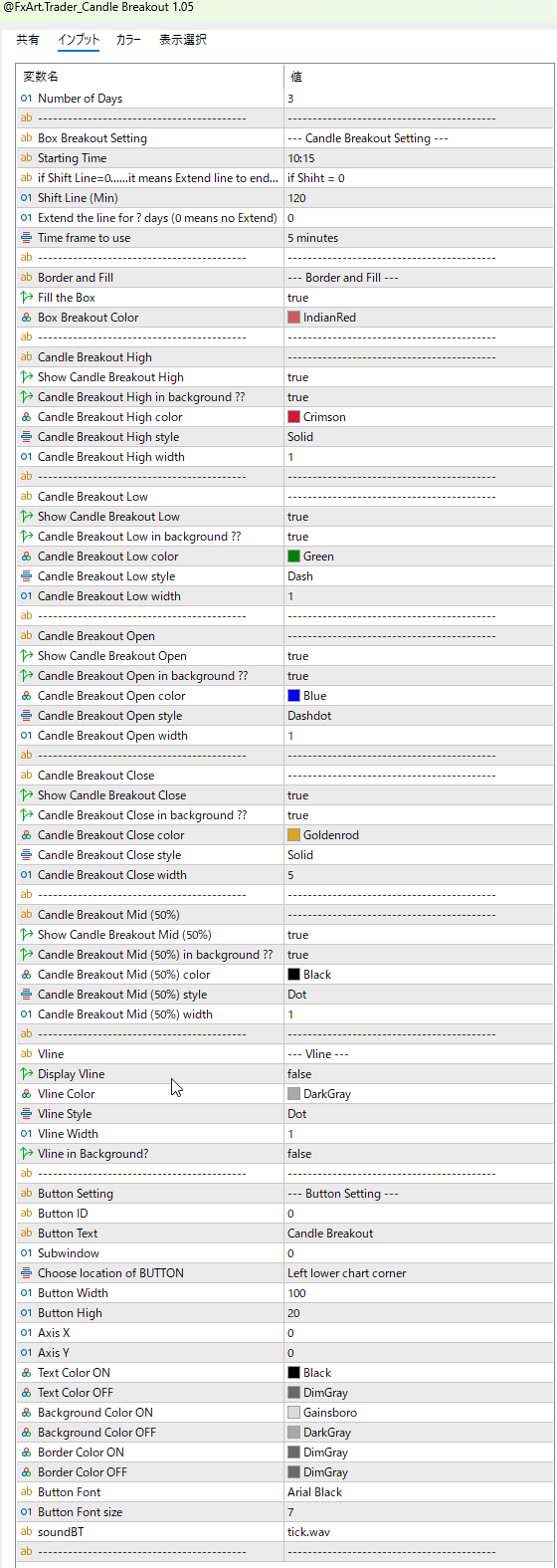 表示時間足や時間等の設定変更は可能ですが、デフォルトの場合は5分足以外では何も表示されませんのでご注意ください。