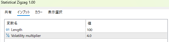 通常のジグザグは、直近の高値から〇%以上下げたらスイングが確定、といった感じの条件になっていますが、このインジでは直近のスイングから標準偏差 × VolMultipler分だけ動いたらスイング確定となります。