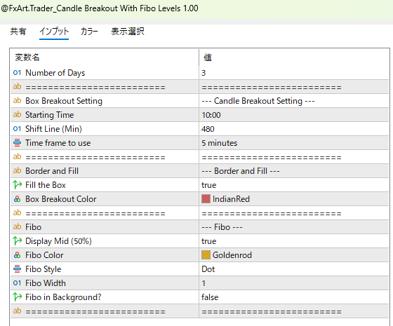 指定した時間の足の高値・安値をハイライトして、加えてフィボナッチラインを描画するインジです。
