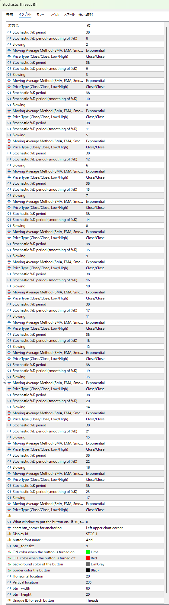 各ストキャスについてはパラメーターや計算方法などが細かく設定可能ですので、こだわりたい方にもお勧めです。