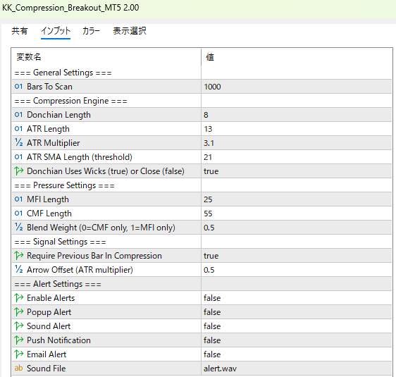 ドンチャンチャネルをベースにサインを出す「KK_Compression_Breakout_MT5」