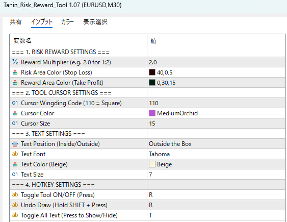 その状態でマウスをクリックするとリスクリワードのボックスが表示されます。